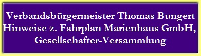 Verbandsbürgermeister Thomas Bungert - Hinweise z. Fahrplan Marienhaus GmbH,