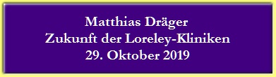 Matthias Dräger, am 29. Oktober 2019: Zukunft der Loreley-Kliniken St. Goar und Oberwesel: